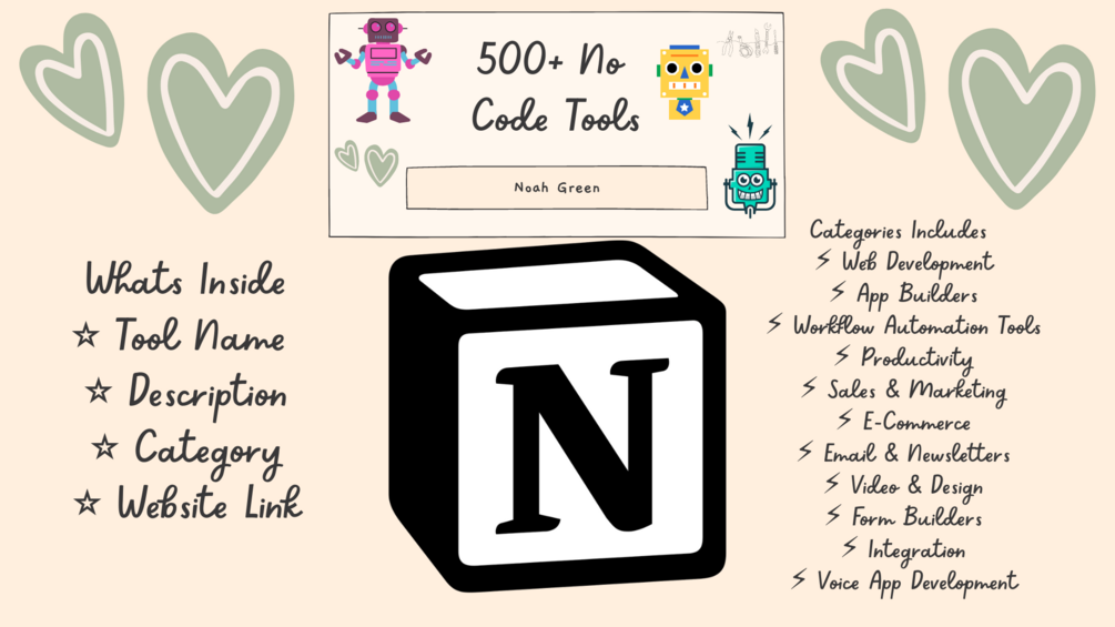 I have Curated a list of over 500+ No code tools with prices links and information.